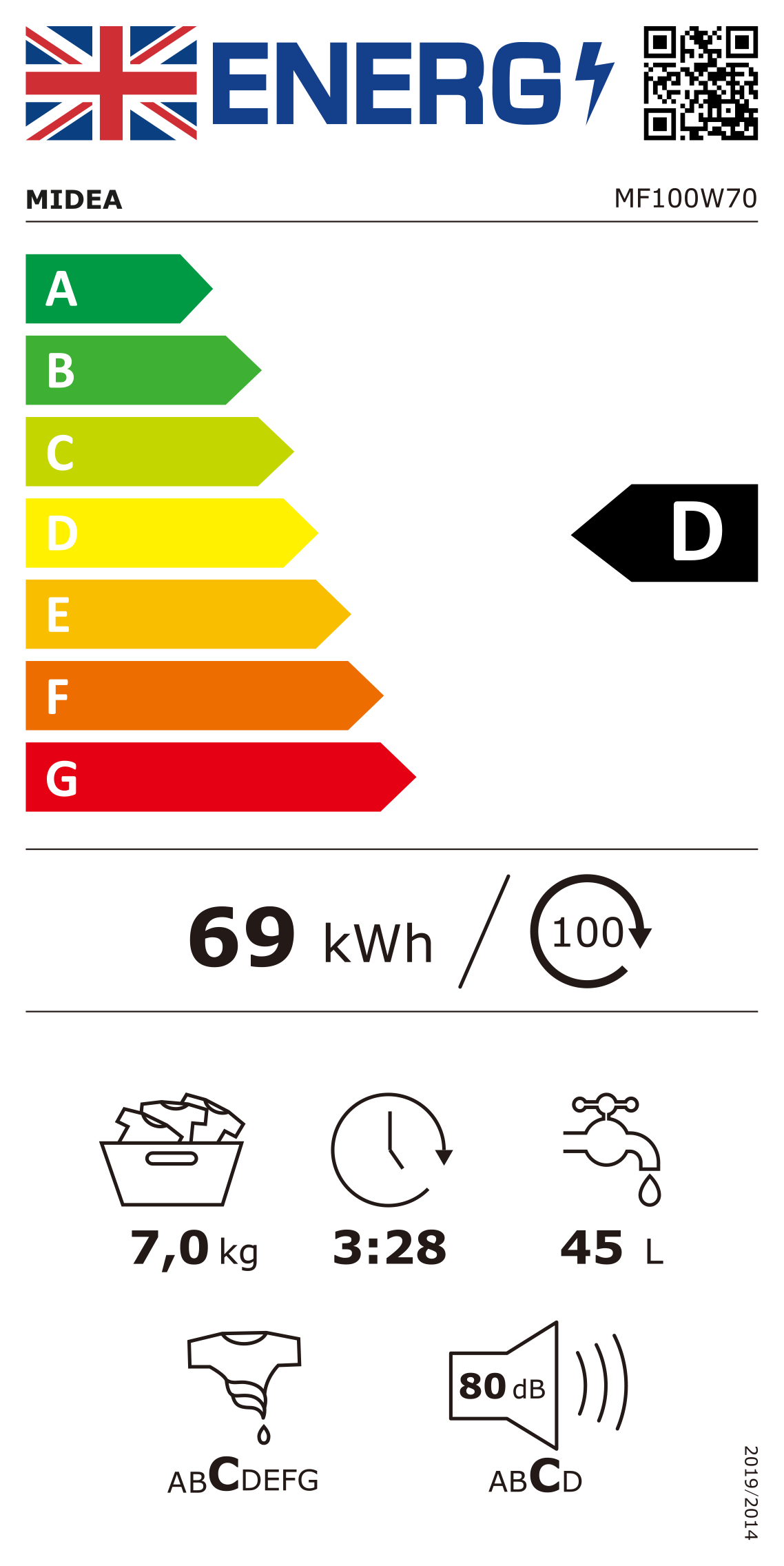Midea MF100W70 Midea White 7KG 1200RPM Washing Machine